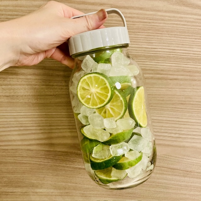 種をキレイに取り除き、瓶にすだちと氷砂糖を交互に入れて完成!!!!