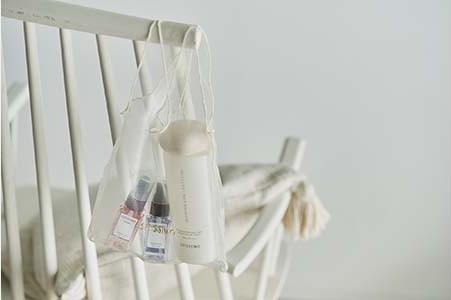 只今、ボディーセラムソープをご購入のお客様に、フレグランスアドバイザーの監修と、タカラベルモントの知見をもとに生まれたオリジナルブレンドのフレグランスミストとESTESSiMOロゴ入り、オーガンジーバッグをプレゼントしております。